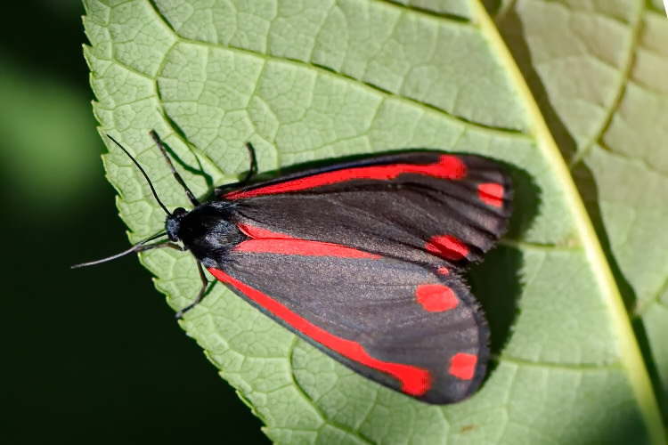 Jakobskrautbär [Tyria jacobaeae], auch Blutbär oder Karminbär