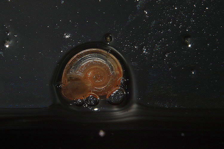 kleine Posthornschnecke an der Scheibe im Aquarium