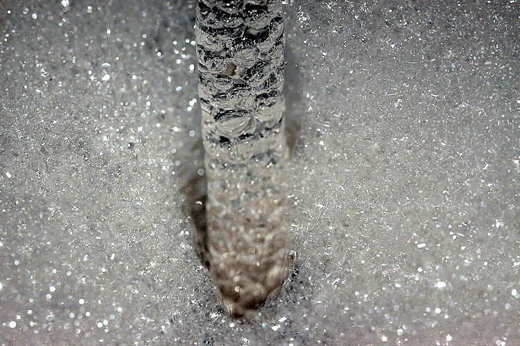 harter Wasserstrahl trifft auf den Schaum im Waschbecken