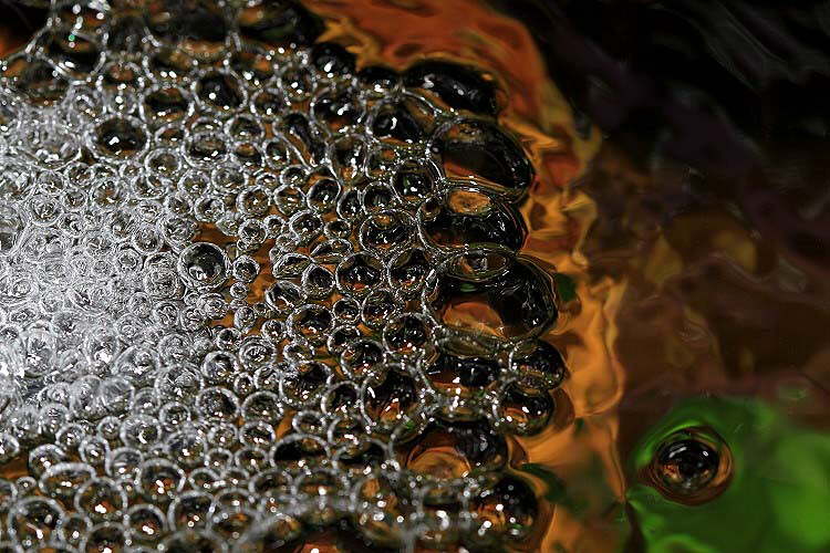 Luftblasenansammlung auf der Wasseroberfläche im Aquarium