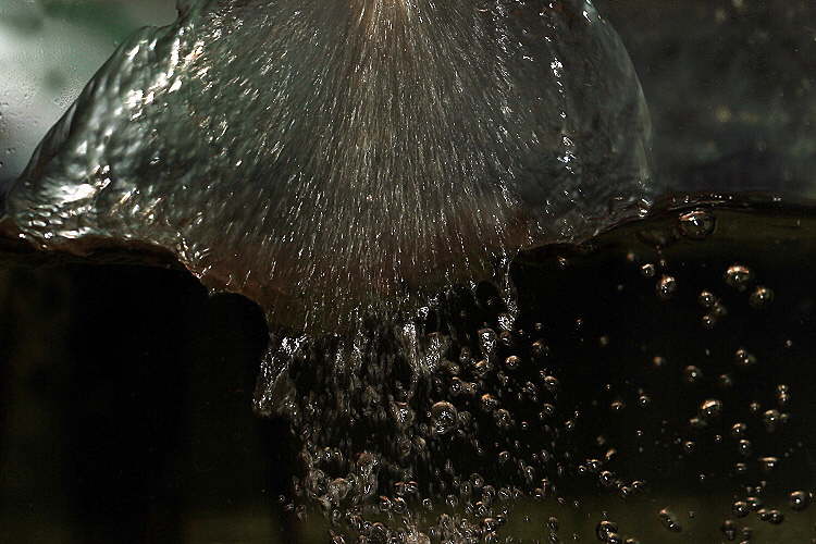 ein feiner sehr harter Wasserstrahl trifft auf die Seitenscheibe im Aquarium