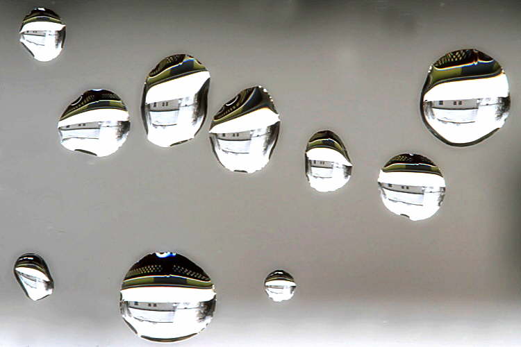 in den Wassertropfen an der Fensterscheibe spiegelt sich die Umbegung
